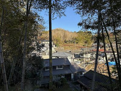 巣箱から見える景色です。淡竹が枯れて白い竹やぶになっています