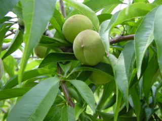 桃の袋かけに行った。88歳の伯父が30年来丹精している桃畑である。師匠(伯父からみると妹)と桃畑に直行する。2日前からもう一人の伯父が手伝っている。いとこ夫婦もすでに作業にかかっていた。谷間にあるので鳥の声がこだまする。鳴き声から思うのに,キジ,ウグイス,ホトトギス,シジュウカラの合奏である。春ゼミはもう終わったのだろう。脚立に上がり桃の実を間引きながら袋かけをするが,本当におじきたちは元気だ。黙々と袋をかけていく。桃の木の下で食べる弁当もおいしかった。チトンフィットをたっぷり浴びた一日であった。