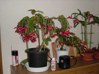 シャコバサボテンはクリスマスカクタスともいわれ,きょうこそ出番なのであるが,あんまり手入れができておらずどれもぱっとしない。
