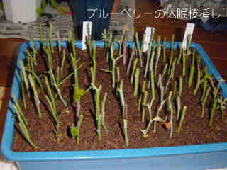 福田さんもブルーベリーの剪定枝をすぐ挿したと言われていたので,やってみた。ティフブルー,ウッダード,ホームベルの三種。これもまた管理がたいへん。