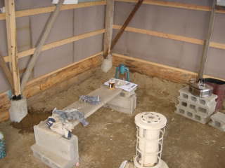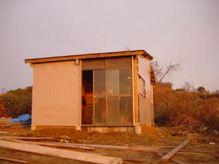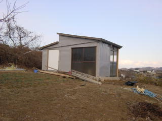 U野さんの大工仕事はきょうで終わりだ。あとは少しずつ内装などを自分でしないといけない。回りに土嚢を積み,基礎部分を強化することも必要とのこと。