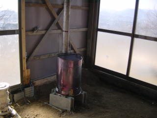 またU野さんの力を借り,これを取り付けた。焼却炉なので燃焼効率を上げるためにロストルなどがあるがじっくり燃やすためにこれをはずし,空気穴の一部も鉄板でふさいだ。