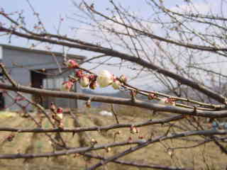 きのうの雨の影響か曇っていたがあたたかく感じた。アンズと柿を少しばかり剪定した。