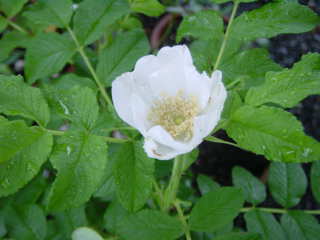 ローズヒップの花が咲いた。あの”知床旅情”の「ハマナス」はこの花のことらしい。