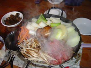 友の用意してくれたすき焼きをほおばりながら話もはずみ,元谷の夜は深まる。寒さもじんわりとこたえてくる。何枚も厚着をしてシュラフにもぐるも思い出話がつきない。ランタンの灯を消したのもおぼえていない。朝食は豚汁だった。