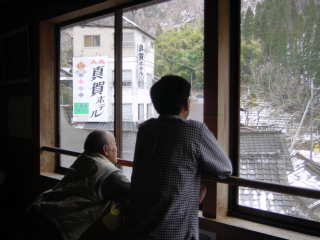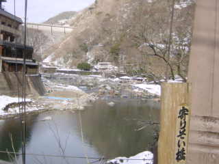 昼はジンギスカン鍋を蒜山のレストハウスで食べ,その帰路,湯原温泉の露天風呂に向かった。管理人だけは雪の残る明るすぎるこの風呂には入れなかった。