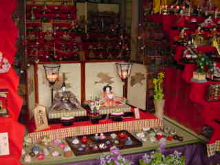 港付近は商家が多いのでお雛も立派だ。しもた屋の格子戸を開けて入っていくと,座敷にはでんと大きな雛人形が飾られていた。倉の中でも展示されていた。