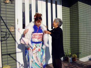 倉敷市ではこの日に成人式をする。弟の子が成人式を迎え,おばあさんに晴れ姿を見せにやって来た。