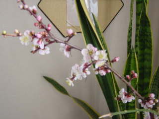 部屋の中ではアンズの花が咲いている。