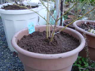 その霰が降る中を延び延びになっていたブルーベリーの植え替えをした。ピートモスをほぐし,長靴をはいた足で踏みながら水をなじませた。寒いので6鉢ほど植え替えただけで家の中に逃げ込んだ。とても寒くて続かない。
