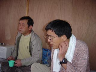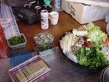 山の小屋に仲間が寄り合い,酒宴を開いた。S藤氏作の心のこもったちらし寿司とヤマメの押し寿司。K丸氏の用意してくれたボタン鍋。Y山氏手作りのわさび漬け。豪華な料理だった。O熊氏による小屋の壁もできあがっており,壁に背をもたらせることができ,ずいぶんゆったりとくつろげる段取りとなった。夜更けまで話がはずみ,その場に寝袋を敷いて寝た。ただ,約一名のいびきと,この陽気にもう出てきた約一匹の蚊に悩まされ,かなりの寝不足となった。