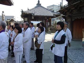 この日の最後の第20番鶴林寺は標高570メートルの所にあり,札所最初の難所であるとか。それでもバスでの巡拝であるからその実感はない。境内には残雪があった。伽藍の様子も風雪に耐えたおもむきがある。白衣に鶴のご朱印を押してもらった。