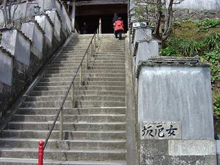 標高620メートルの山頂の寺まで10分ほどでつく。ゴンドラからの眺めは最高だった。頂上駅に自転車を預け,本堂への階段を登った。大杉が林立する中,伽藍はどっしりと建っていた。仁王門,本堂,多宝塔どの諸堂も立派である。