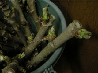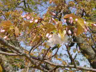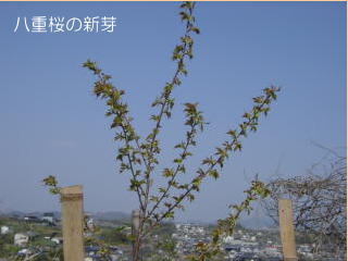 去年,畑の小屋の側に植えた八重桜も葉が出だしたが,これに花をつけるのはまだまだ先である。八重桜の下で花見ができますように。