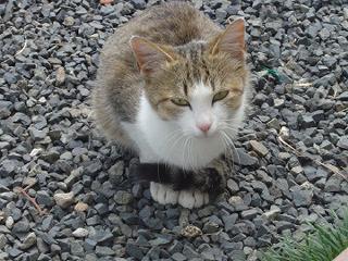 猫も外がいいようだ(ブドウのビニールが破れるではないか。コラッ降りろーっ)。
