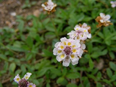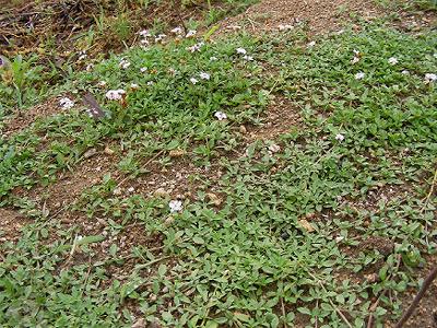 雑草対策に植えてみたヒメイワダレソウの花が咲いた。どんどん咲くようで,小さくてかわいい。ミツバチも訪れるという。