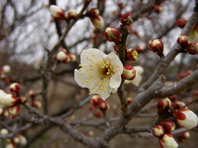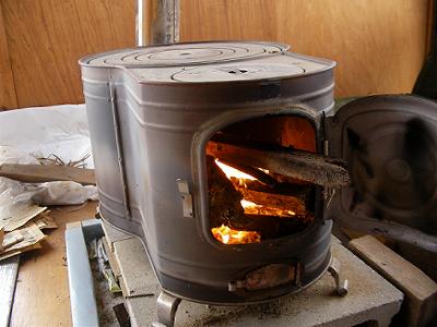 曇り空で風も冷たいが,剪定時機を逃した梅が気になり,山の畑に行ってみた。すでに小梅はちらほら咲き始めている。小梅は徒長枝が多く,空に向けてぼうぼうと伸びている。これだけでも摘もうとしていると冷たい雨がにわかに落ちてきた。小屋に逃げ込み,暖を取るためブリキの薪ストーブの火を熾した。つけ木には乾いたものがいるが,ある程度火に勢いがつくと生木でも燃える。小屋の側にある栴檀の枝を切って燃やした。トタン屋根をたたく雨音と携帯ラジオを聞きながらしばし雨宿りをする。ストーブの火をつつきながら温もるのは,ガスストーブなどとはちがったものがあり,落ち着く。火力が弱まると,雨の中に出て枝木を拾ってくる。