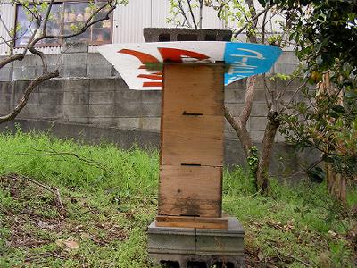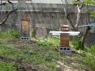巣箱を2箱足して,3段とした。この場所では昨年スムシにやられ全滅したので,今年はうまくいってほしい。