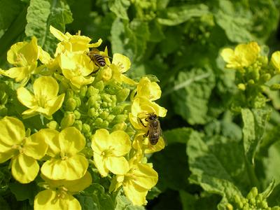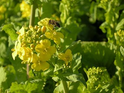 菜の花に蜂がさかんにやってくる。