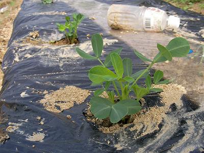 ピーナツの芽が出て大きくなっている。