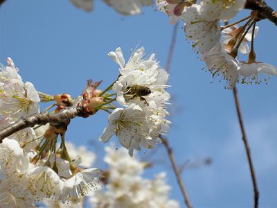 サクランボの花が満開となり,蜂がせっせと授粉してくれている。今年も鈴生りとなるに違いない。