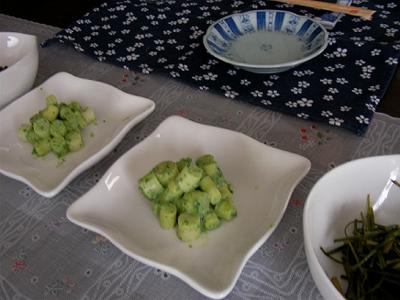 今日は山の友から電話があり,山菜と岩魚を食べようというお誘いがあった。我々は彼が苦労してとってきたものをただいただくだけ。それも調理をしてまで。いつもどおり無遠慮におしかけ,相伴する。ネマガリタケの木の芽和えと天ぷら,葉ワサビ,ウドのきんぴらと天ぷら,ギボシのおひたし,そして岩魚の塩焼き。ネマガリタケは焼いて甘い味噌を付けて食べると最高!春の味覚,それも珍しいものばかりだった。
