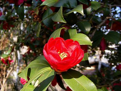 畑の下にある荒神様に,やぶ椿が咲いていた。