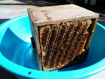 寒くなる前に採蜜をと思い,2群採った。夏の蜜と違い濃厚である。蜜を漉すザルからなかなか落ちないほどの粘りがある。糖度も高い。