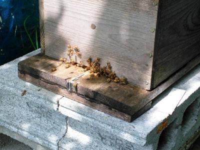 ミツバチの分封のシーズンだが,分封の瞬間は今年はまだ見ていない。越冬した巣箱の横に置いた新しい巣箱に,どうやら分封群が入ったようだ。拍子抜けだが,これが本来の理想的な待ち箱に分封群が入るというかたちだろう。分封群の偵察隊のお眼鏡にかなった巣箱に落ち着いたというところか。