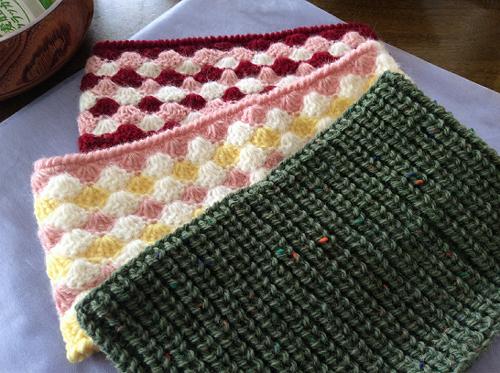 うずまきキャップ,モールヤーンのベレー帽,レッグウォーマー,毛糸のたわし,ラベンダースティック